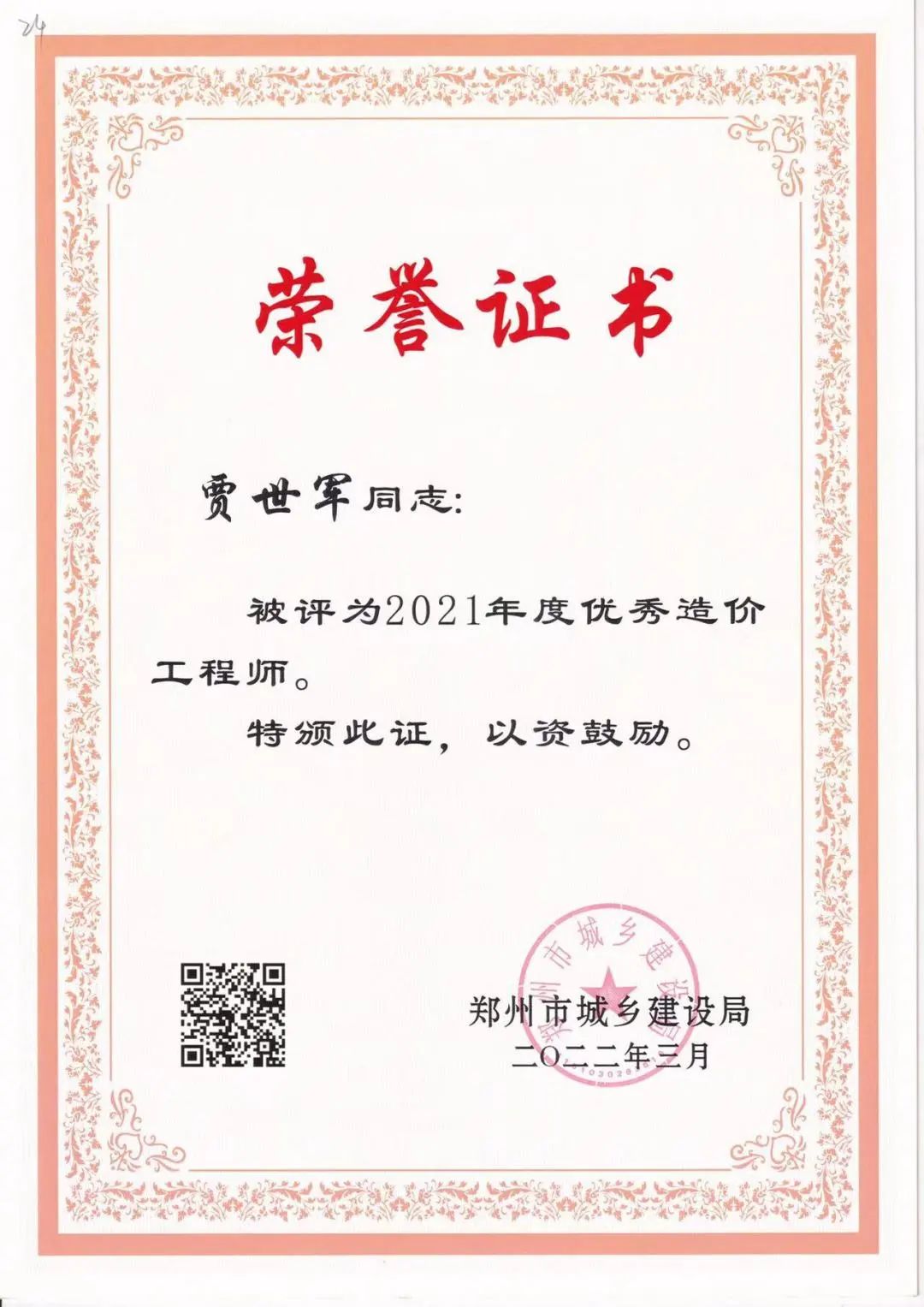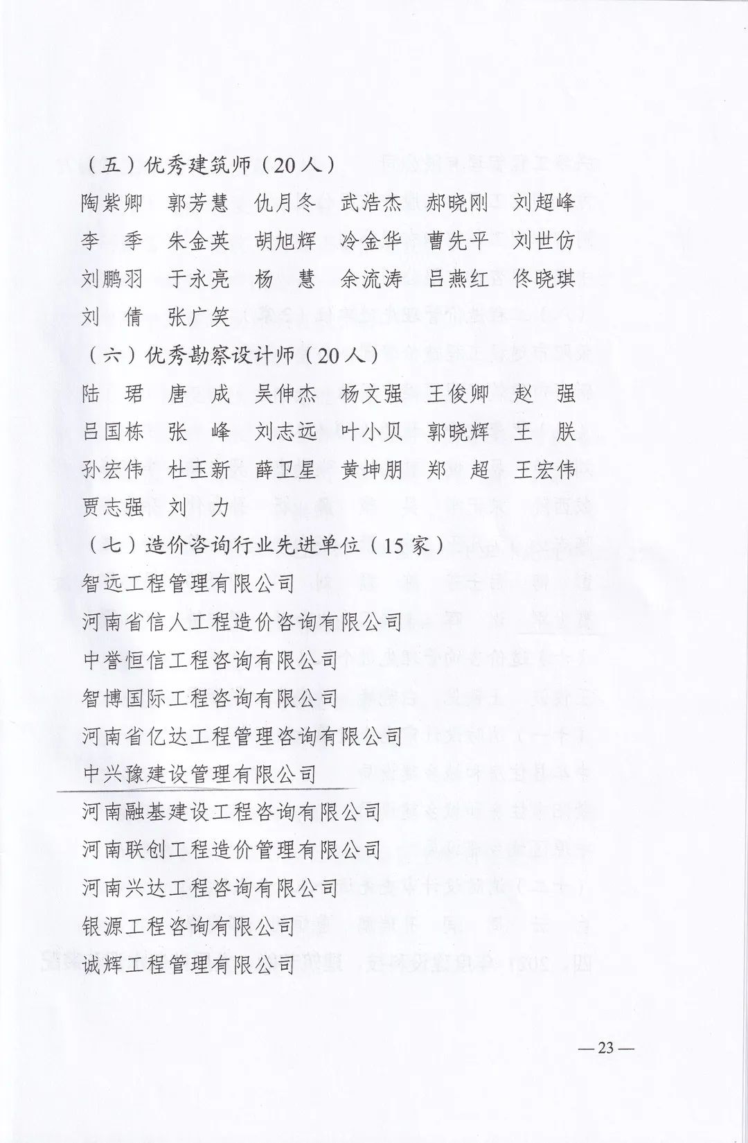 近日,鄭州市城鄉(xiāng)建設(shè)局發(fā)布了《關(guān)于表彰2021年度建設(shè)系統(tǒng)先進(jìn)單位先進(jìn)企業(yè)和先進(jìn)個(gè)人的通報(bào)》,中興豫建設(shè)管理有限公司被評(píng)為“2021年度招標(biāo)代理先進(jìn)單位”、“2021年度造價(jià)咨詢行業(yè)先進(jìn)單位”,我公司員工韋曉東被評(píng)為“優(yōu)秀總監(jiān)”、劉東生被評(píng)為“優(yōu)秀注冊(cè)監(jiān)理工程師”、賈世軍被評(píng)為“優(yōu)秀造價(jià)工程師”。