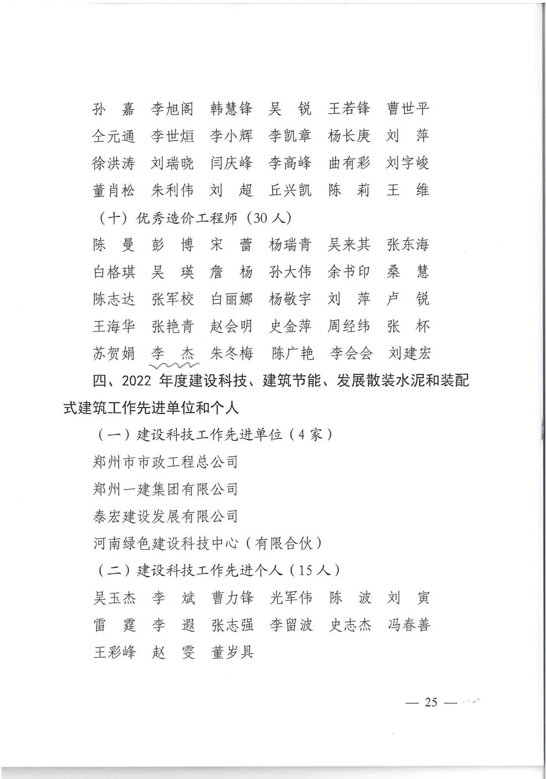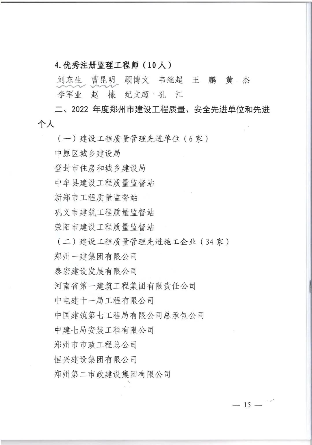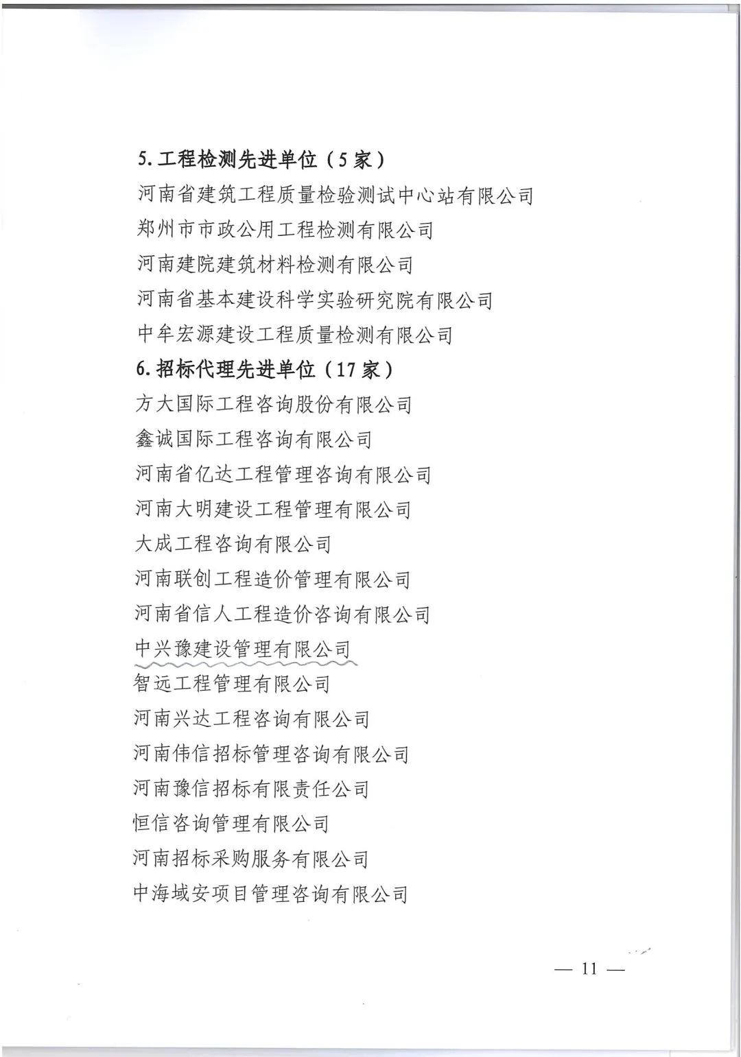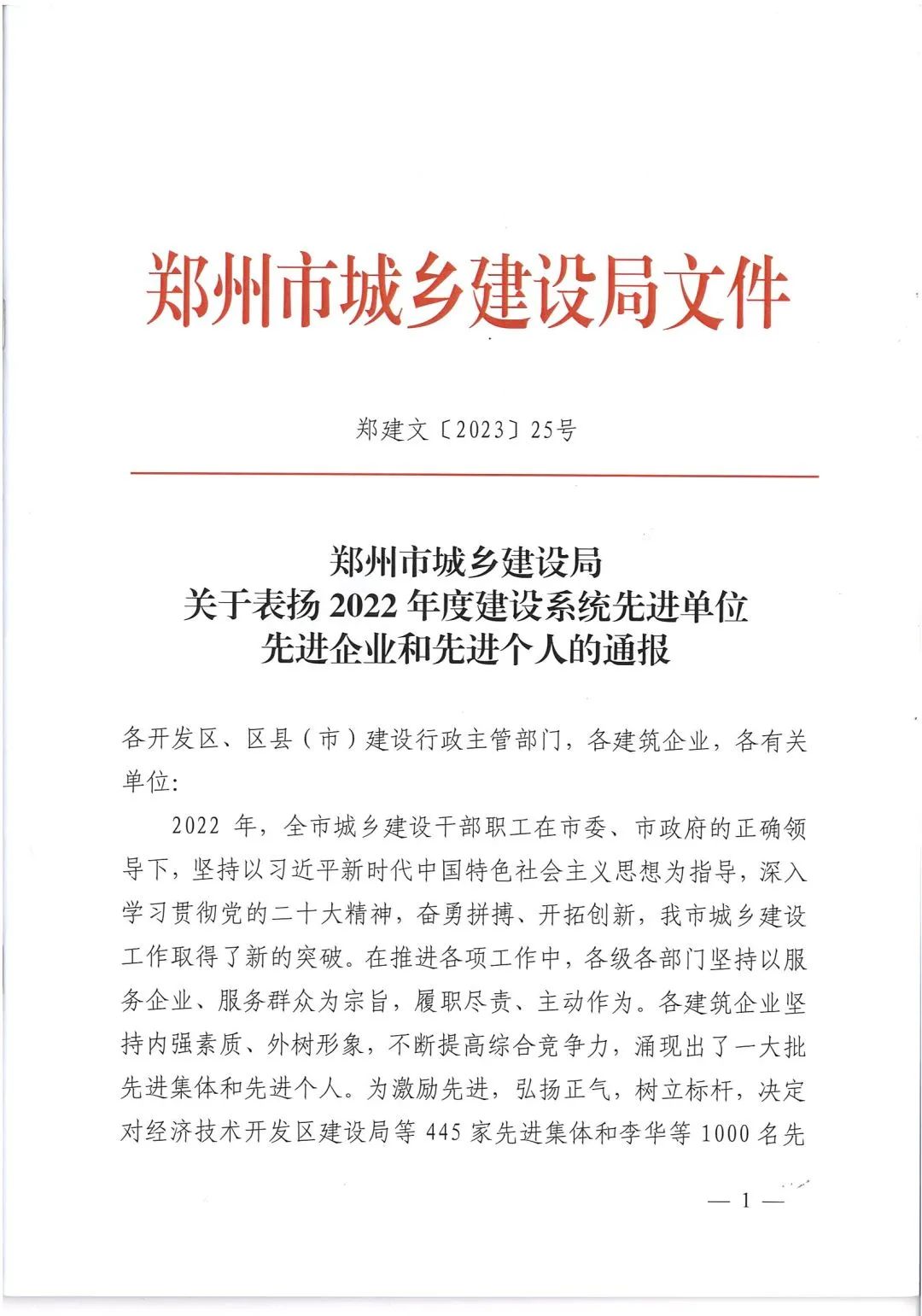 近日,鄭州市城鄉(xiāng)建設(shè)局發(fā)布了《關(guān)于表彰2022年度建設(shè)系統(tǒng)先進(jìn)單位先進(jìn)企業(yè)和先進(jìn)個(gè)人的通報(bào)》,中興豫建設(shè)管理有限公司被評(píng)為“2022年度招標(biāo)代理先進(jìn)單位”、“2022年度造價(jià)咨詢行業(yè)先進(jìn)單位”,我公司員工李杰被評(píng)為“優(yōu)秀造價(jià)工程師”,韋曉東被評(píng)為“優(yōu)秀總監(jiān)”,劉東生、曹昆明被評(píng)為“優(yōu)秀注冊(cè)監(jiān)理工程師”。