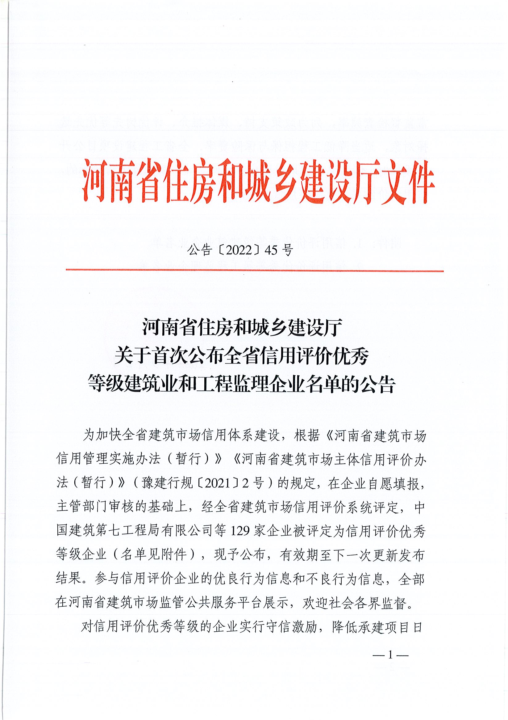9月2日,河南省住房和城鄉(xiāng)建設(shè)廳首次公布全省信用評(píng)價(jià)優(yōu)秀等級(jí)建筑業(yè)和工程監(jiān)理企業(yè)名單,在主管部門(mén)審核的基礎(chǔ)上,經(jīng)全省建筑市場(chǎng)信用評(píng)價(jià)系統(tǒng)評(píng)定,中興豫建設(shè)管理有限公司榮登榜單!
