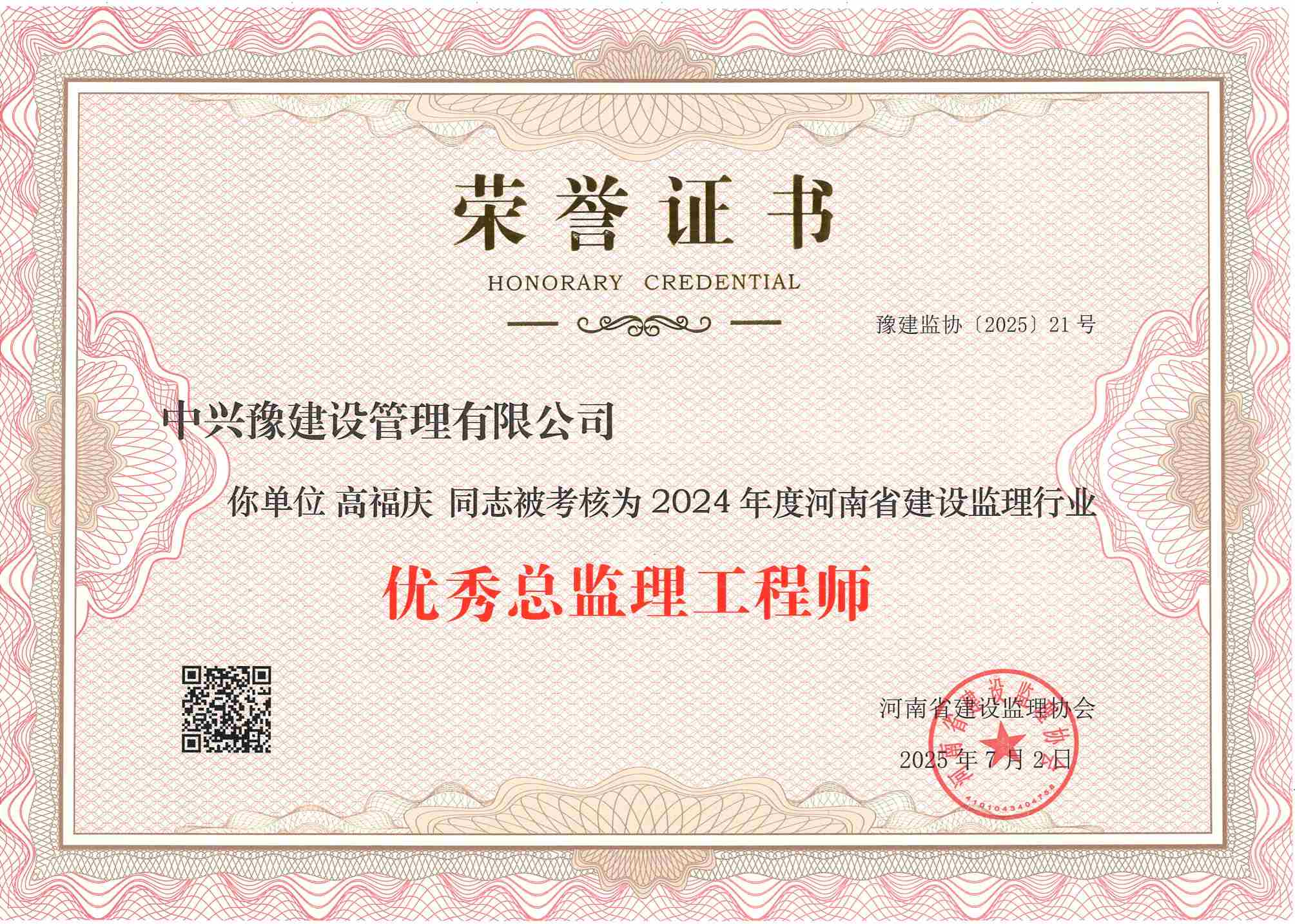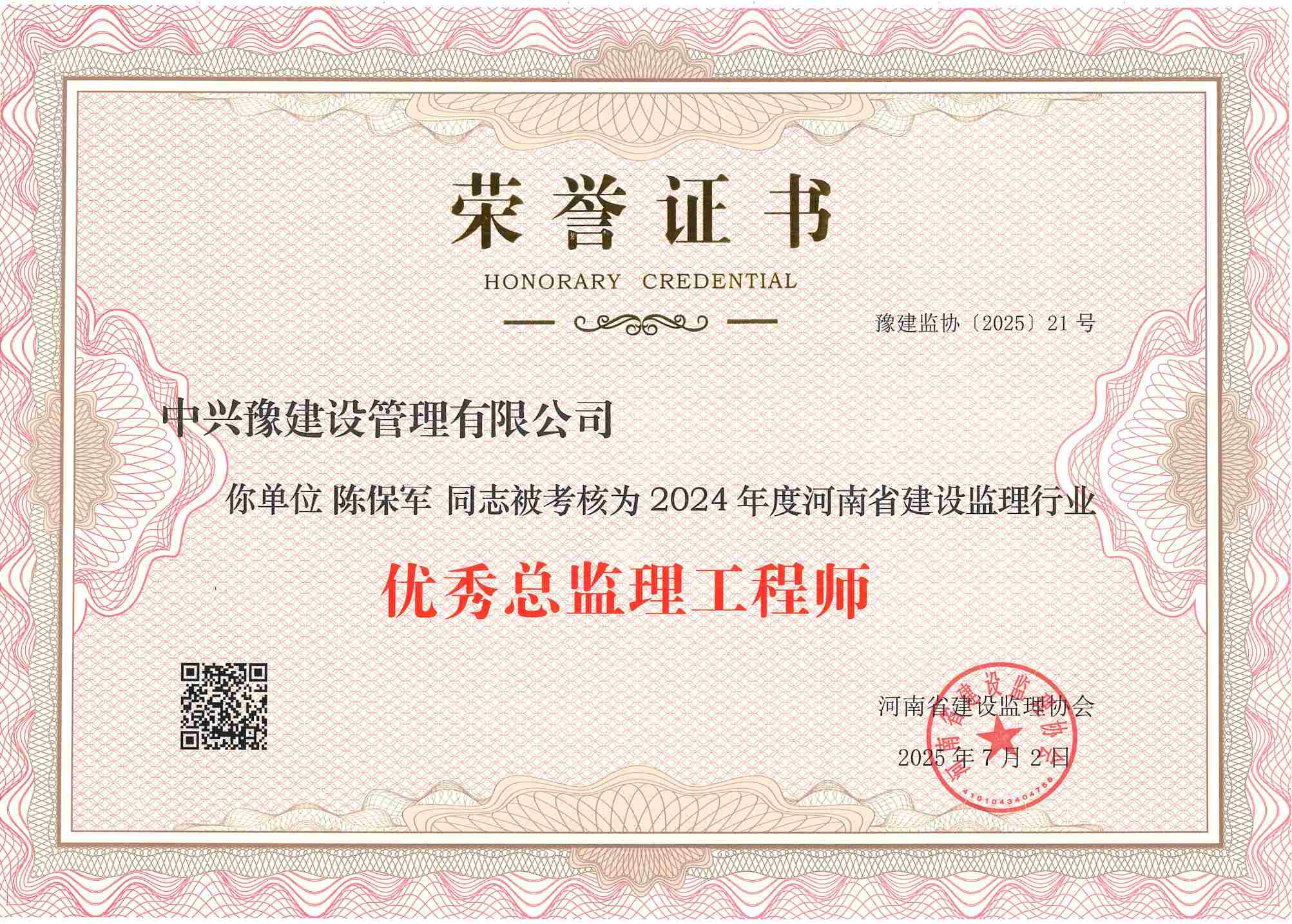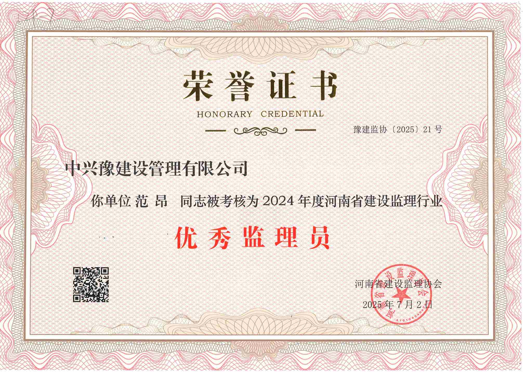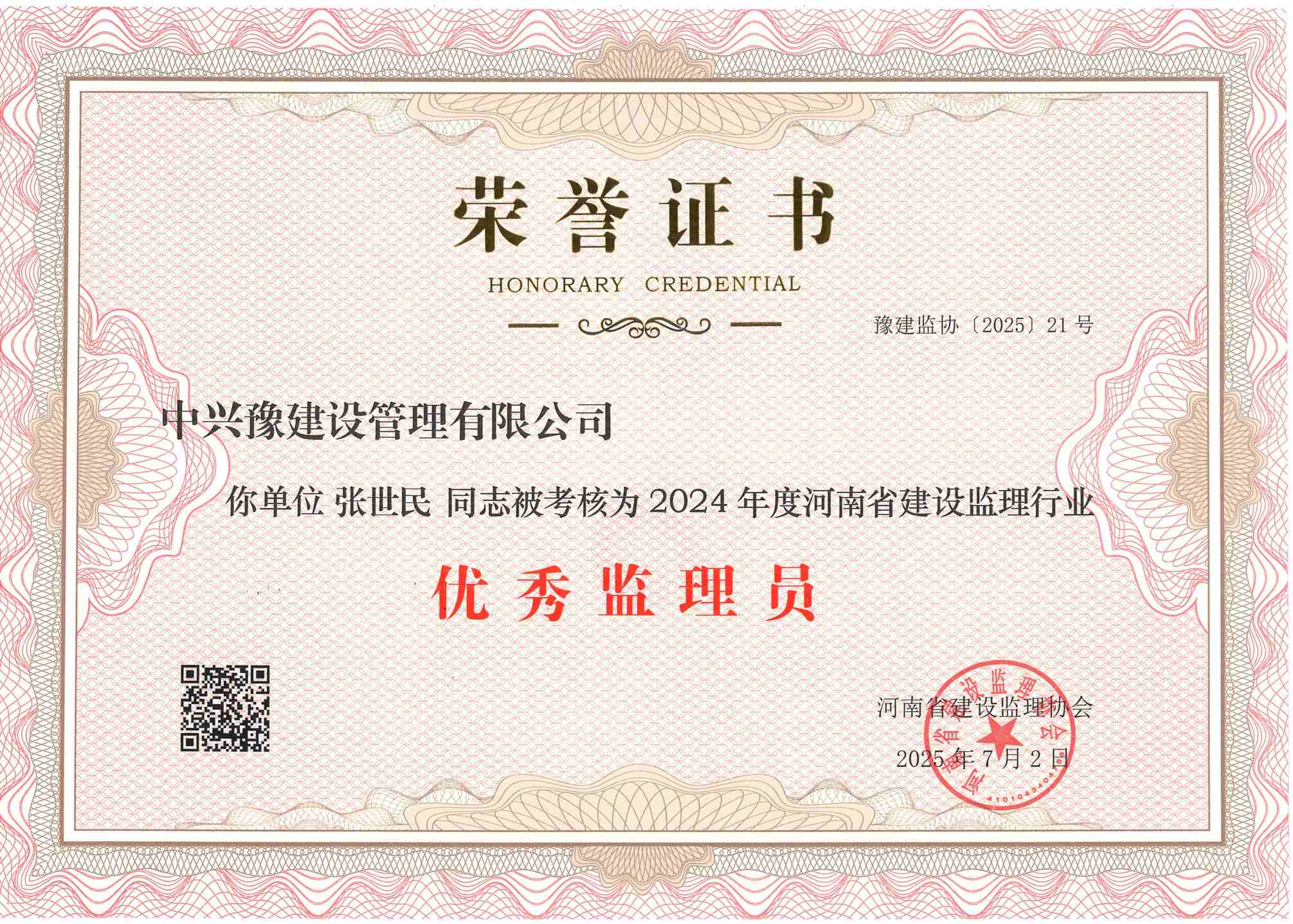 近日,河南省建設(shè)監(jiān)理協(xié)會(huì)發(fā)布了《關(guān)于公布2024年度會(huì)員單位和從業(yè)人員考核結(jié)果的通知》。中興豫建設(shè)管理有限公司榮獲“2024年度優(yōu)秀工程監(jiān)理企業(yè)”。