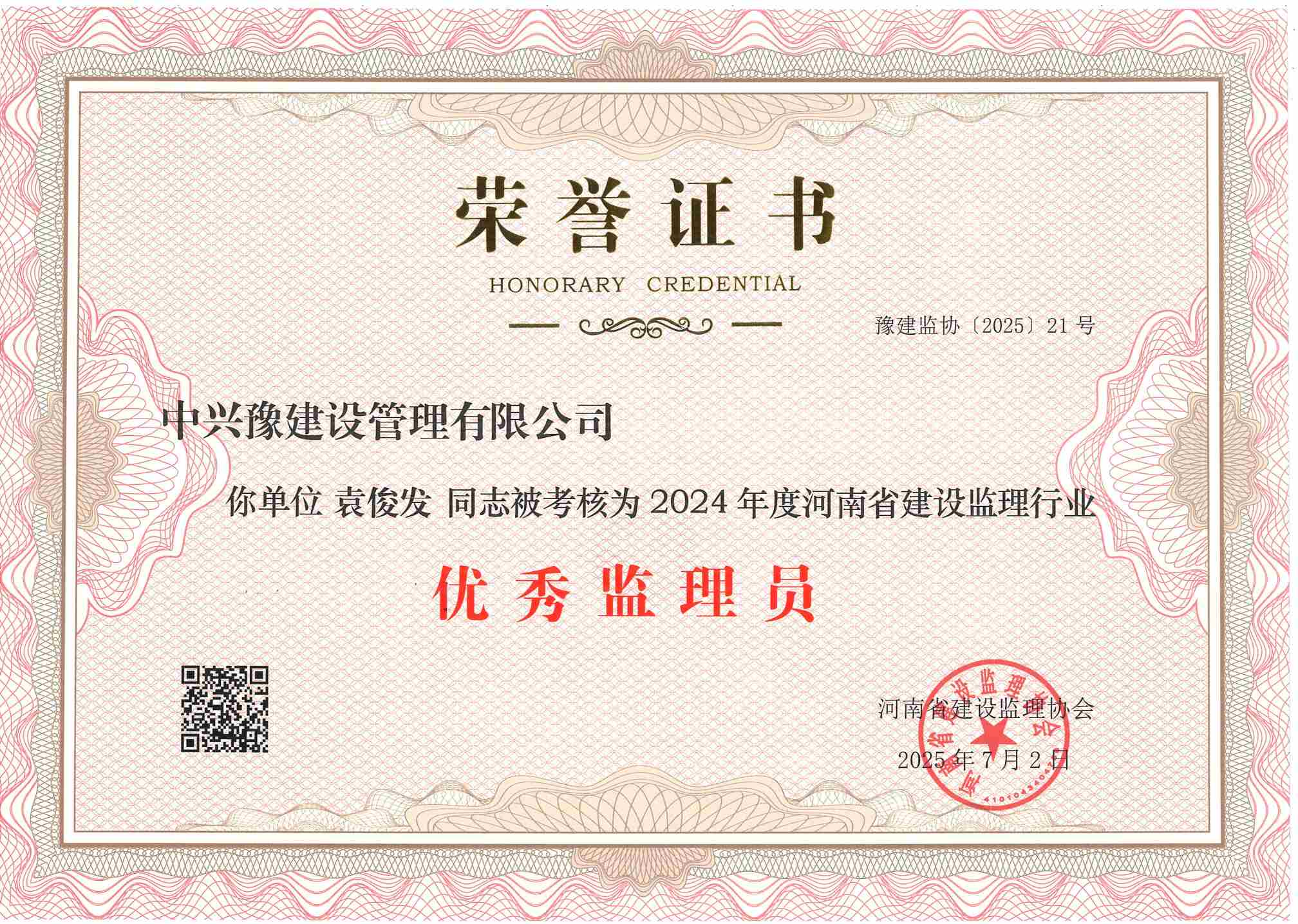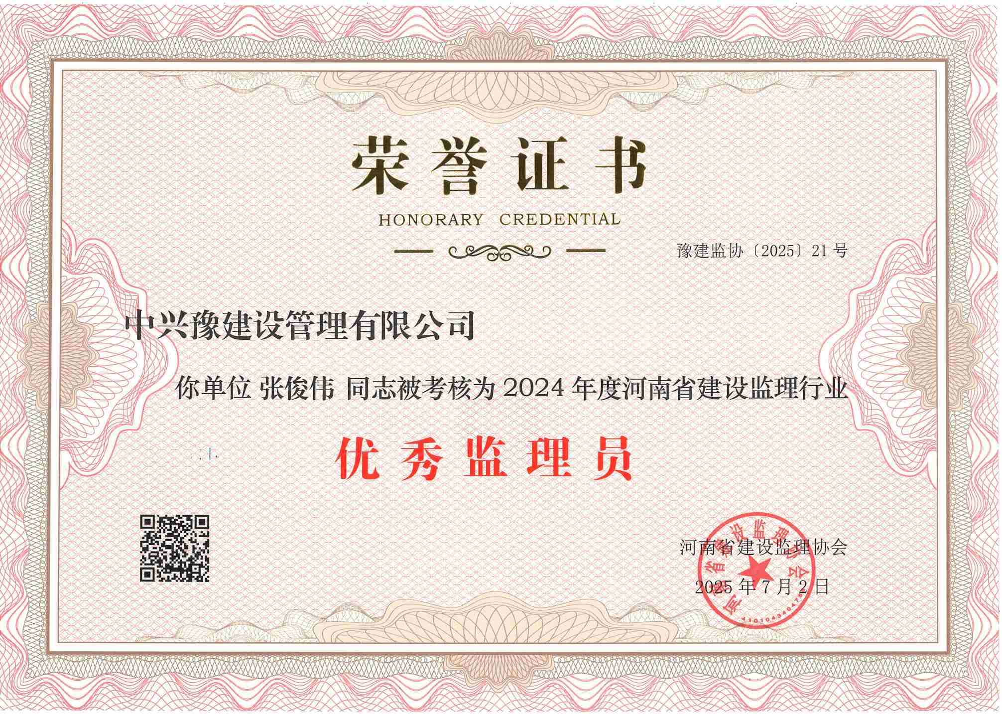 陳霄、范昂、呂怡秒、孫仕博、袁俊發(fā)、張俊偉、張世民 7位同志榮獲“優(yōu)秀監(jiān)理員”稱號(hào)