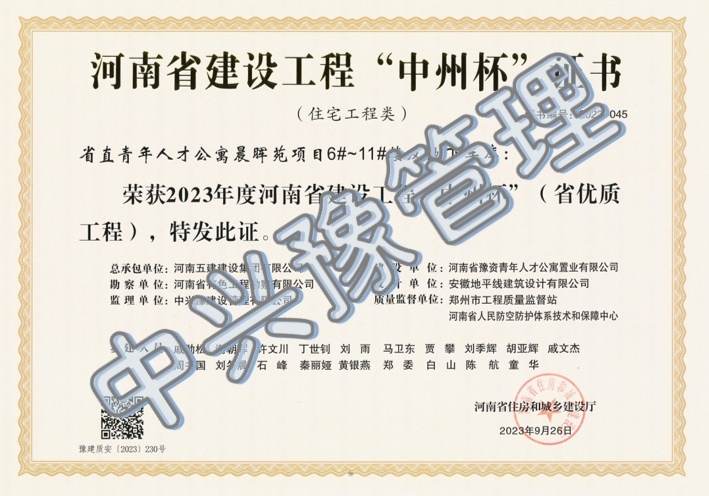 近日,河南省住房和城鄉(xiāng)建設(shè)廳公布了《關(guān)于2023年度河南省建設(shè)工程中州杯(省優(yōu)質(zhì)工程)的通報(bào)》。中興豫建設(shè)管理有限公司監(jiān)理的淇水花園住宅小區(qū)1#-3#5#-13#15#16#樓17#樓 (幼兒園) 18#樓(配套公共服務(wù)設(shè)施用房)及地下車庫項(xiàng)目和省直青年人才公寓晨暉苑項(xiàng)目6#~11#樓及地下車庫項(xiàng)目榜上有名。