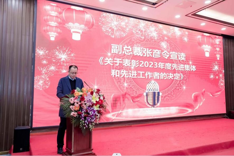 公司副總裁張彥令宣讀《關(guān)于表彰2023年度先進集體和先進工作者的決定》,同時號召全體員工要以先進集體和先進工作者為榜樣,以昂揚的斗志、務(wù)實的作風(fēng)、進取的精神全身心投入到公司“轉(zhuǎn)型升級、創(chuàng)新發(fā)展”征程中,為中興豫的美好明天貢獻力量!