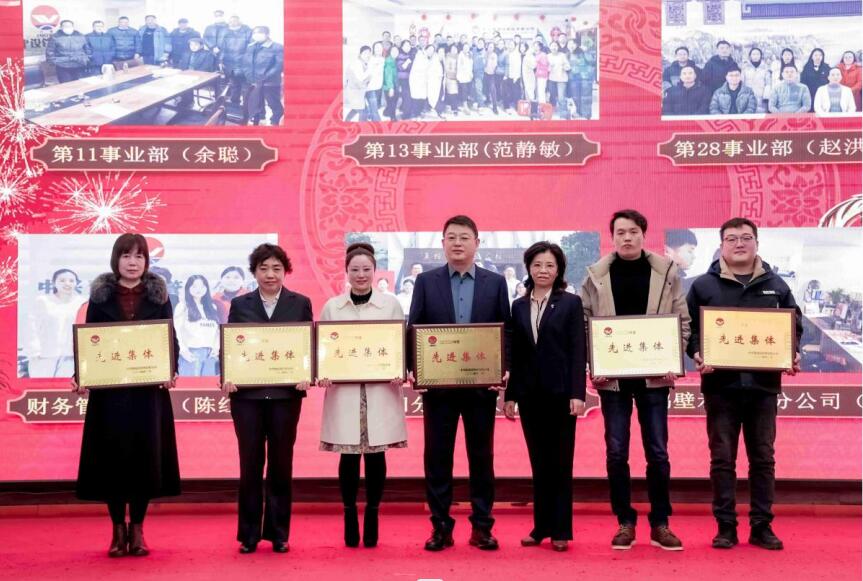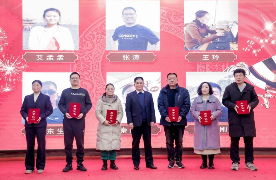 在熱烈的掌聲中,公司董事長劉秒向先進集體代表頒獎,公司總裁李瑞林向先進工作者代表頒獎。