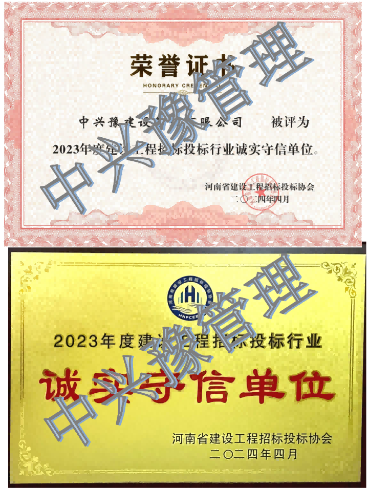 中興豫建設(shè)管理有限公司連續(xù)多年榮獲“河南省建設(shè)工程招標(biāo)投標(biāo)行業(yè)誠(chéng)實(shí)守信單位”榮譽(yù),是協(xié)會(huì)對(duì)公司各項(xiàng)工作的充分肯定,同時(shí)也是一種鞭策。我們將以此榮譽(yù)為新動(dòng)力和新起點(diǎn),為進(jìn)一步深化建設(shè)工程招標(biāo)投標(biāo)行業(yè)誠(chéng)信自律建設(shè),營(yíng)造誠(chéng)實(shí)守信、公平競(jìng)爭(zhēng)的市場(chǎng)環(huán)境,推動(dòng)招標(biāo)投標(biāo)活動(dòng)高質(zhì)量發(fā)展貢獻(xiàn)新的力量!