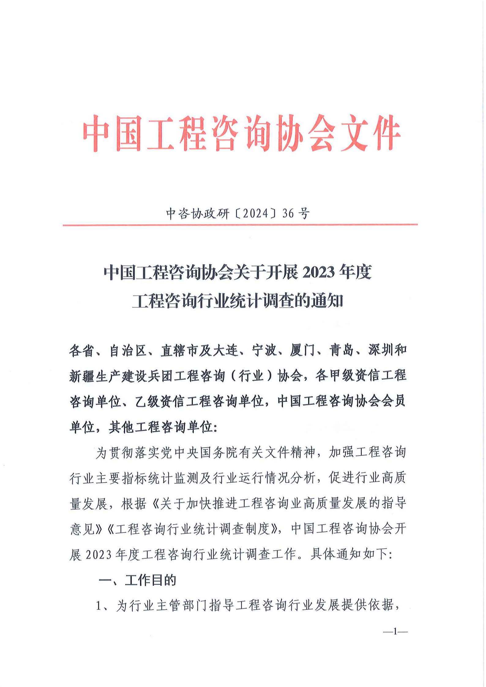中國工程咨詢協(xié)會關(guān)于開展2023年度工程咨詢行業(yè)統(tǒng)計調(diào)查的通知
