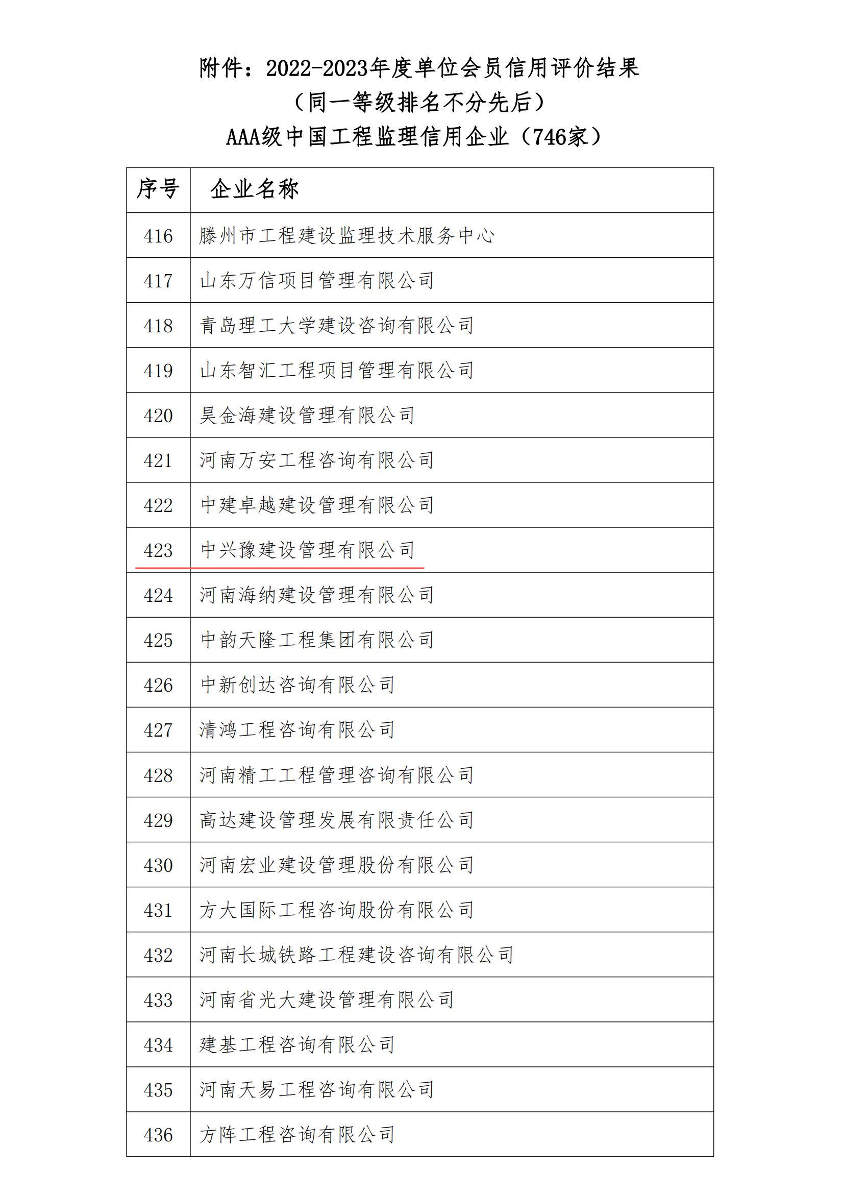 近日,中國(guó)建設(shè)監(jiān)理協(xié)會(huì)發(fā)布了《關(guān)于2022-2023年度中國(guó)建設(shè)監(jiān)理協(xié)會(huì)單位會(huì)員信用評(píng)價(jià)結(jié)果的公示》,經(jīng)自評(píng)、省級(jí)協(xié)會(huì)初評(píng)、專家評(píng)委綜合評(píng)審、公示、反饋、專家復(fù)核等評(píng)價(jià)程序,中興豫建設(shè)管理有限公司榮獲中國(guó)工程監(jiān)理信用評(píng)價(jià)AAA級(jí)企業(yè)!