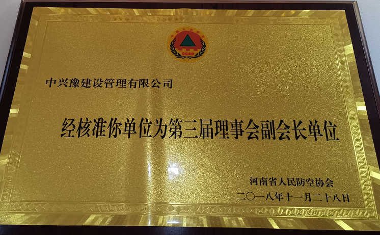 河南省人民防空協(xié)會(huì)第三屆理事會(huì)副會(huì)長單位-會(huì)員資格