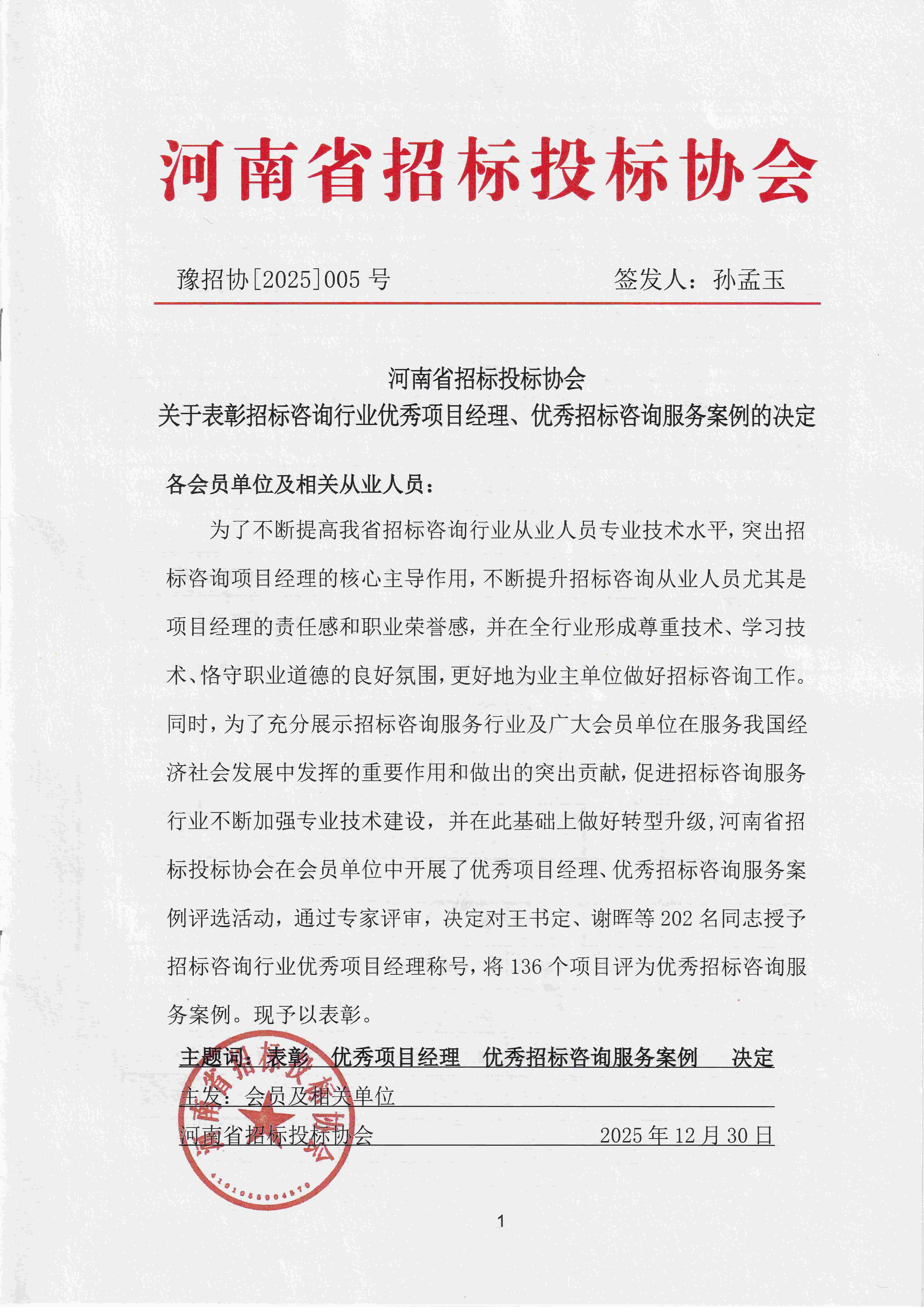 近日,河南省招標(biāo)投標(biāo)協(xié)會發(fā)布了《關(guān)于表彰招標(biāo)咨詢行業(yè)優(yōu)秀項(xiàng)目經(jīng)理、優(yōu)秀招標(biāo)咨詢服務(wù)案例的決定》中興豫建設(shè)管理有限公司榮獲“優(yōu)秀項(xiàng)目經(jīng)理、優(yōu)秀招標(biāo)咨詢服務(wù)案例”榮譽(yù)。