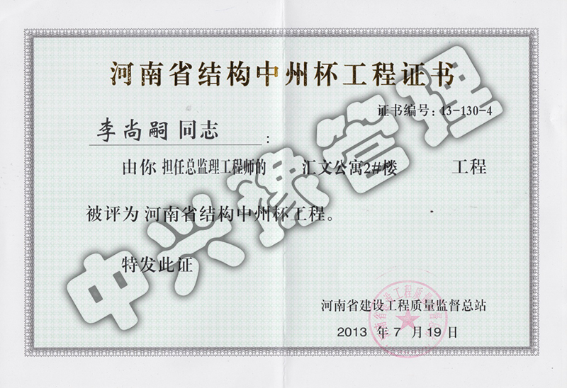 2013年匯文公寓結(jié)構(gòu)中州杯-獲獎項目