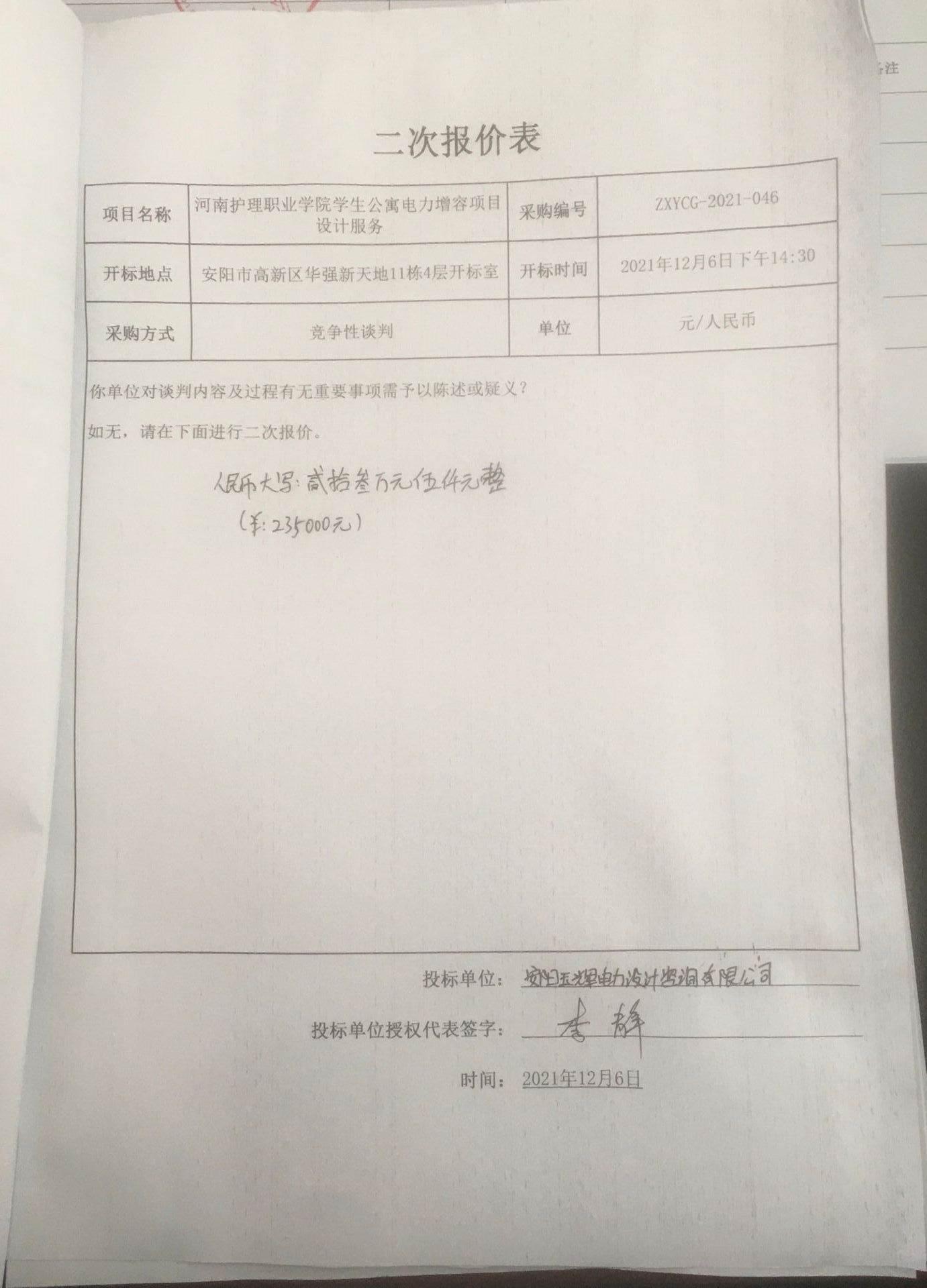 中興豫建設(shè)管理有限公司受河南護(hù)理職業(yè)學(xué)院的委托,就河南護(hù)理職業(yè)學(xué)院學(xué)生公寓電力增容項(xiàng)目設(shè)計(jì)服務(wù)進(jìn)行競(jìng)爭(zhēng)性談判采購(gòu),現(xiàn)將本次采購(gòu)結(jié)果公告如下: