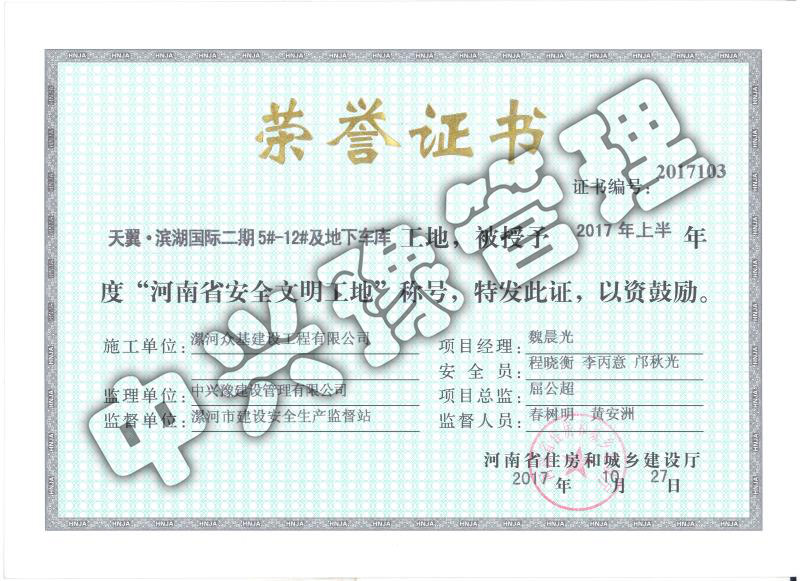 2017年上半年“安全文明工地”-獲獎(jiǎng)項(xiàng)目