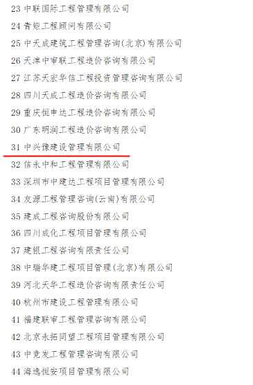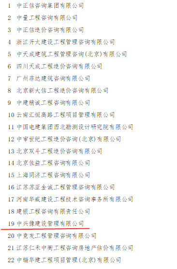 中興豫建設(shè)管理有限公司入圍2020年全國工程造價